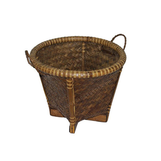Round Bamboo Basket Stand Brown With Handles