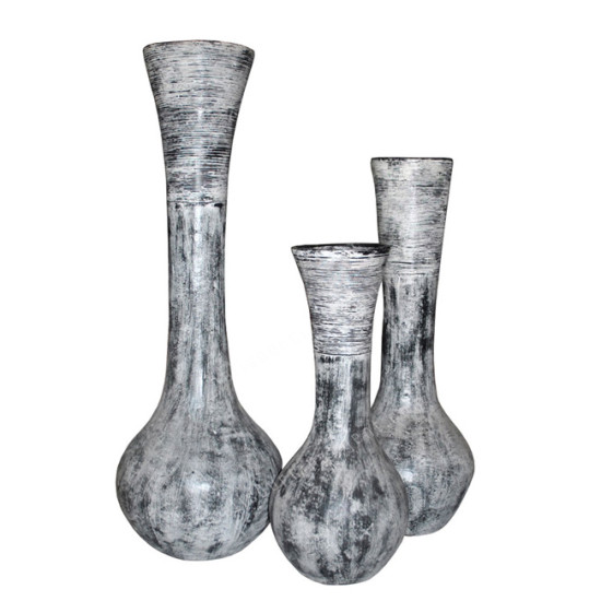 Black White Wash Painted Vase With Banana Bark Set of 3