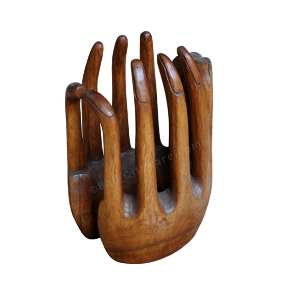 Brown Wooden Carved Pair Of Hands Sculpture