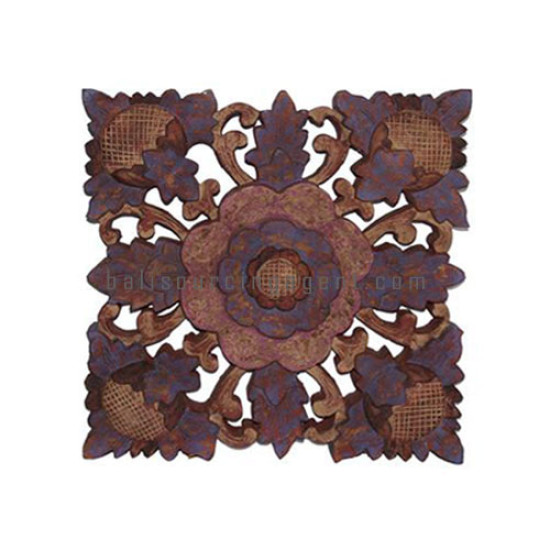 Wood Carved Antique Brown Flower Wall Art