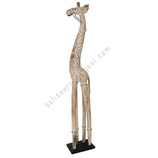 Wooden Giraffe White Wash With Rattan