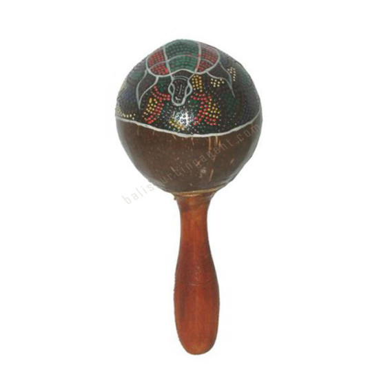 Coconut Shell Stick Maracas Turtle Motif