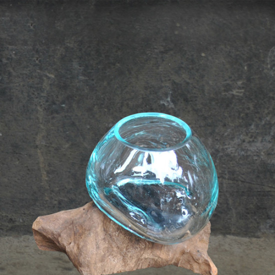 Fish Bowl Molten Glass On Driftwood 10 cm