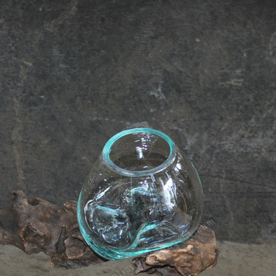 Fish Bowl Molten Glass On Driftwood 13 cm