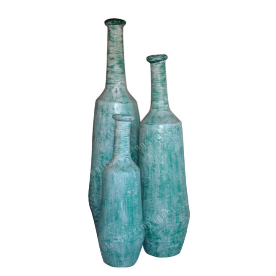 Green White Wash Painted Vase Set of 3