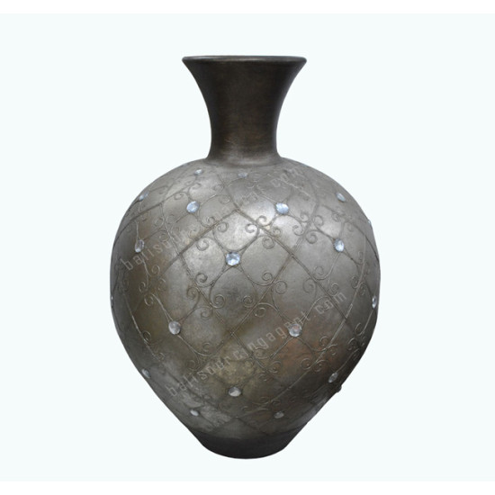 Grey Silver Painted Vase With Mirror