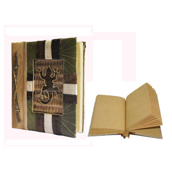 Medium Natural Notebook Green Leaf Gecko Motif