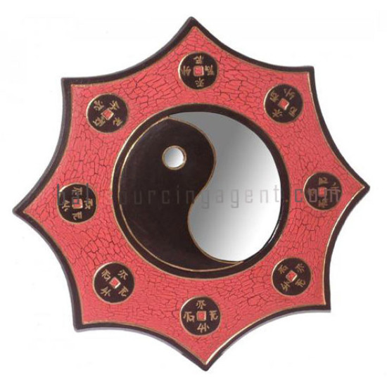 Wall Mirror Frame Yin Yang Cracked Red