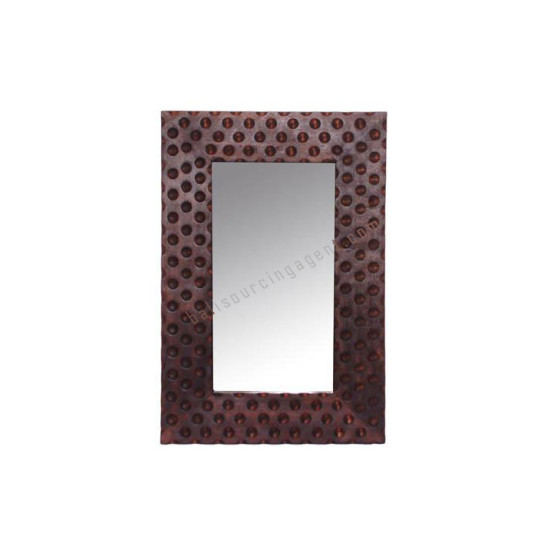 Wooden Rectangle Mirror Dots Motif Tea Brown