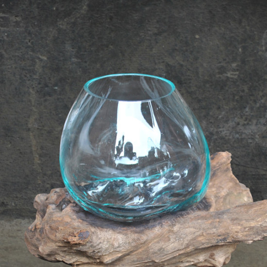 Molten Glass Fish Bowl On Driftwood 25 cm