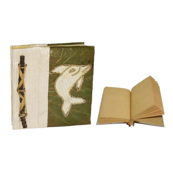 Natural Notebook Medium Green Leaf Dolphin Motif