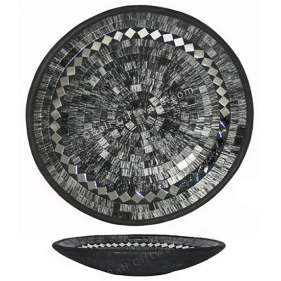 Round Plate Mosaic Glass Black Silver
