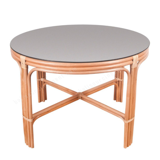 Natural Rattan Alicia Dining Table Black Glass