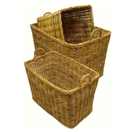 Rectangular Rattan Basket Natural Brown Set Of 3