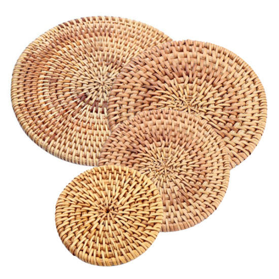 Woven Round Rattan Drink Coaster Natural Set Of 4