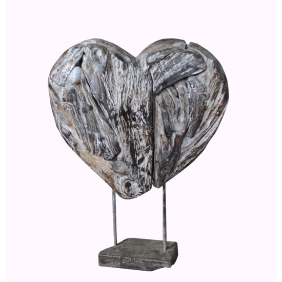 Reclaimed Teak Black Wash Heart on Stand