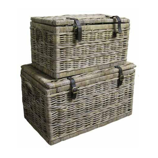Rectangle Rattan Trunk Pale Grey Finish Set Of 2