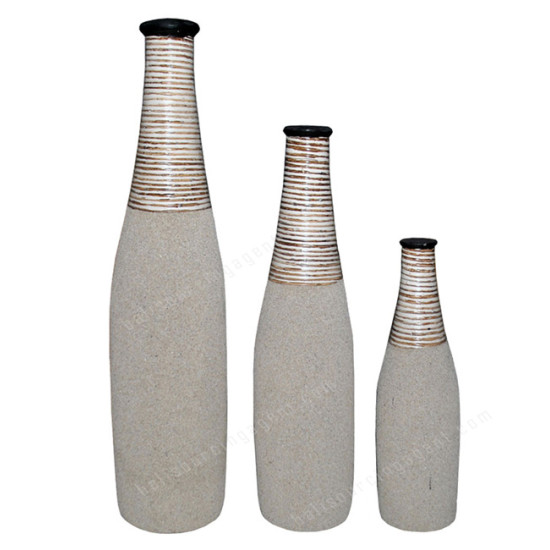White Sand Vase With Rattan Set of 3