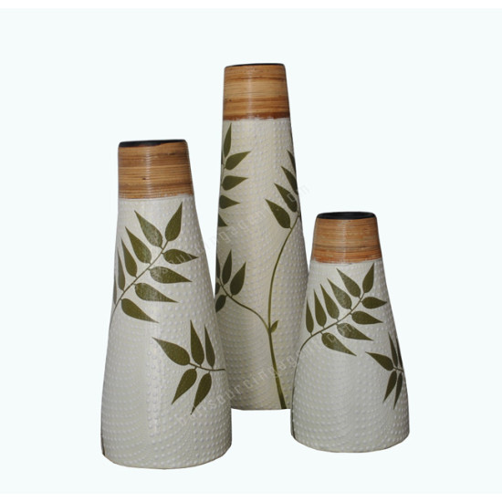 White Vase Painted Leaf Motif Set of 3