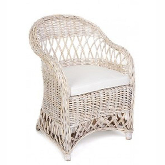 White Wash Rattan Angela Chair White Cushion