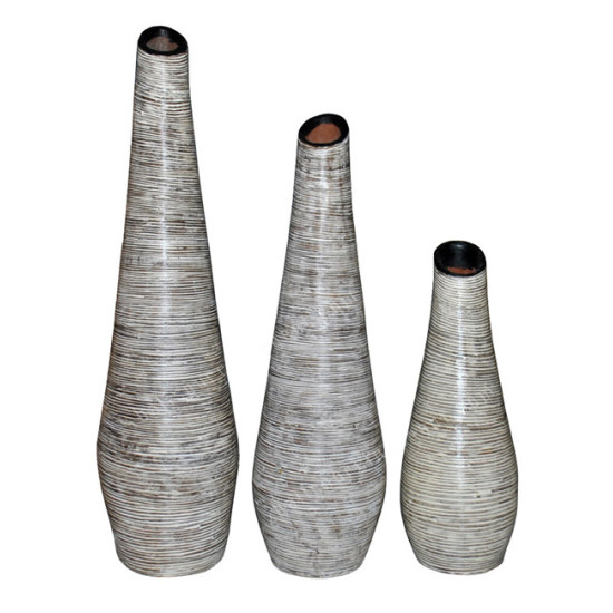 White Washed Vase With Rattan Set of 3