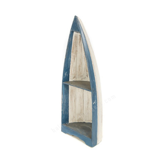 Wood Boat Display Rustic Blue White 97 cm