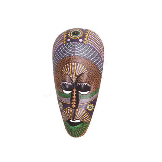 Wooden Brown Green Dots Paint Aboriginal Mask