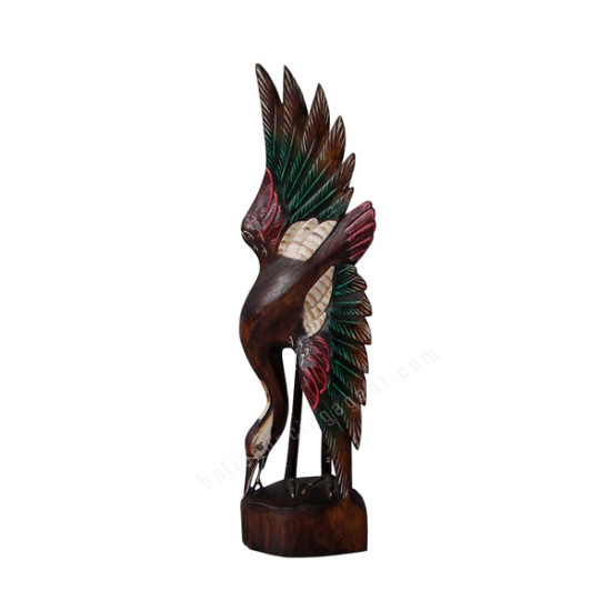 Wood Brown Red Green Flying Flamingo 60 cm