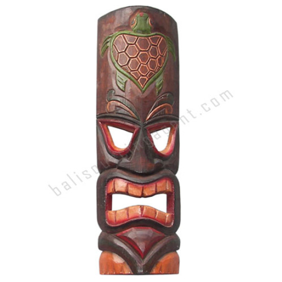 Wooden Carved Brown TIKI Mask Turtle Motif