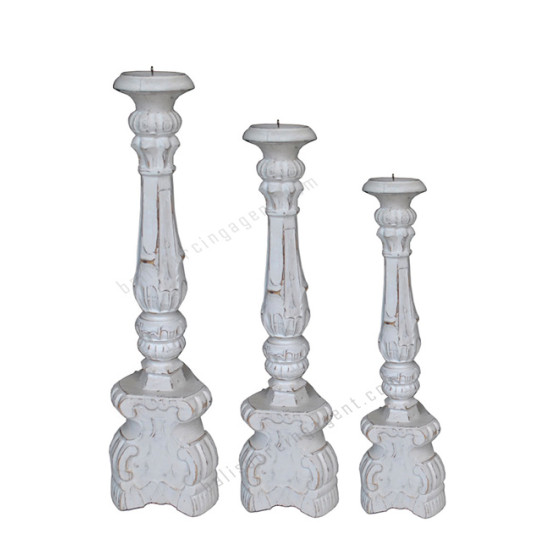 Wooden Pillar Candle Holder White Painted Set Of 3