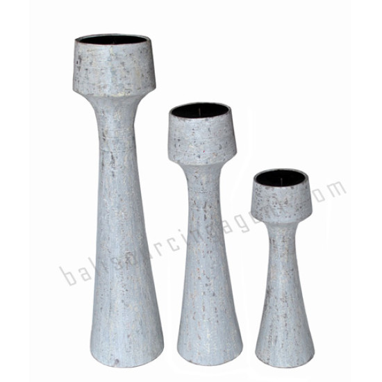 Wooden Candle Holder Distressed White Set of 3