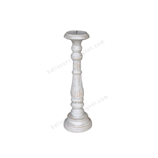 Wood Candle Holder Whitewash 40 cm