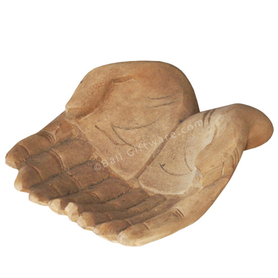 Wood Carved Cupped Hand Bowl 25 cm