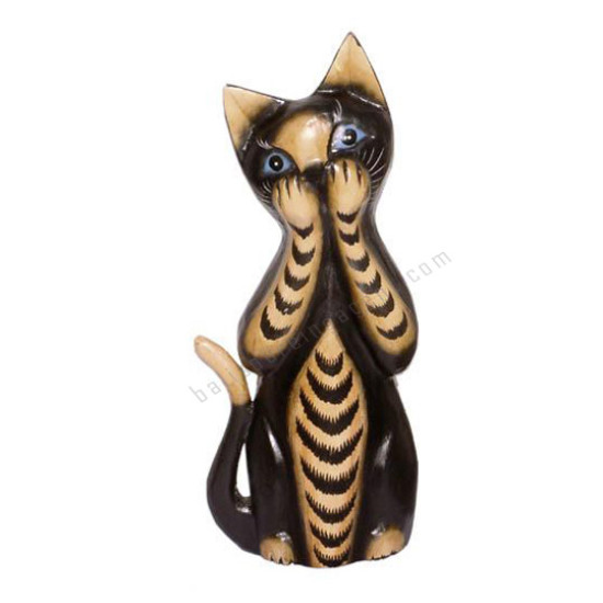 Wood Cat Black Brown Closed Mouth 30 cm