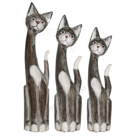 Wooden Cat Painted Grey White Wash Set of 3