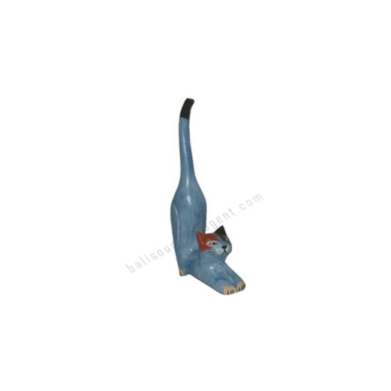 Wooden Mini Cat Stretching Blue Black Brown Ears