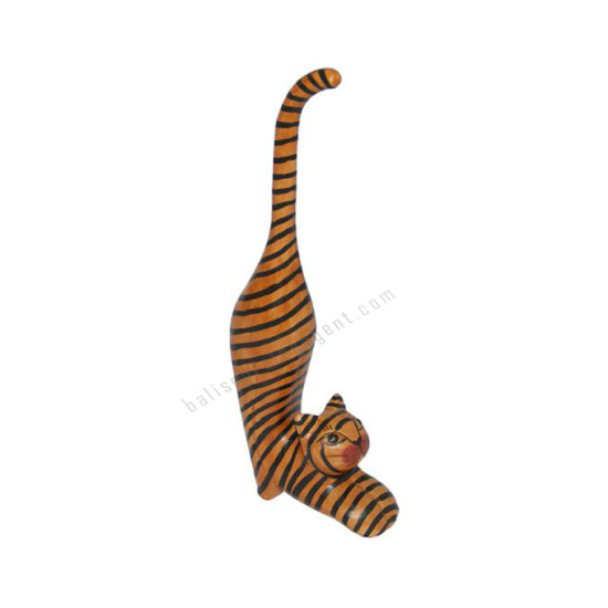 Wooden Mini Cat Stretching Brown Black Stripes