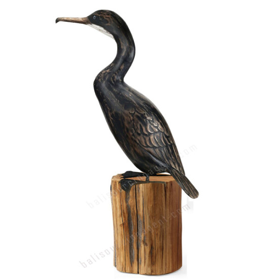 Wood Cormorant Bird On Tree Stump 48 cm