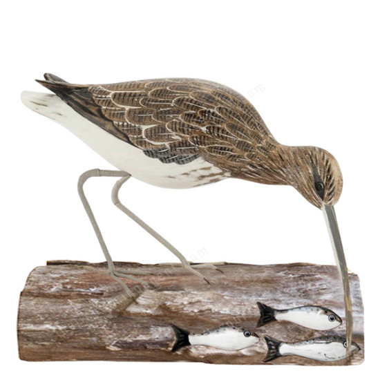 Wooden Curlew Bird Fishing On Wood Block