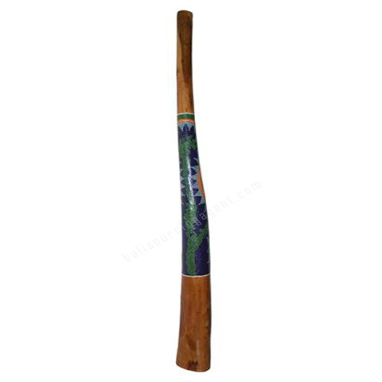 Wooden Didgeridoo Aborigine Green Leaves Motif