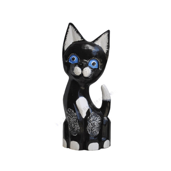 Wood Dwarf Cat Black White Antique 35 cm