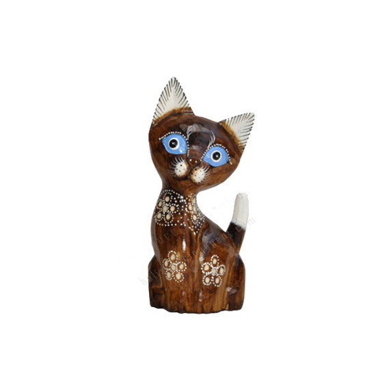Wooden Dwarf Cat Natural Brown Carved Flower