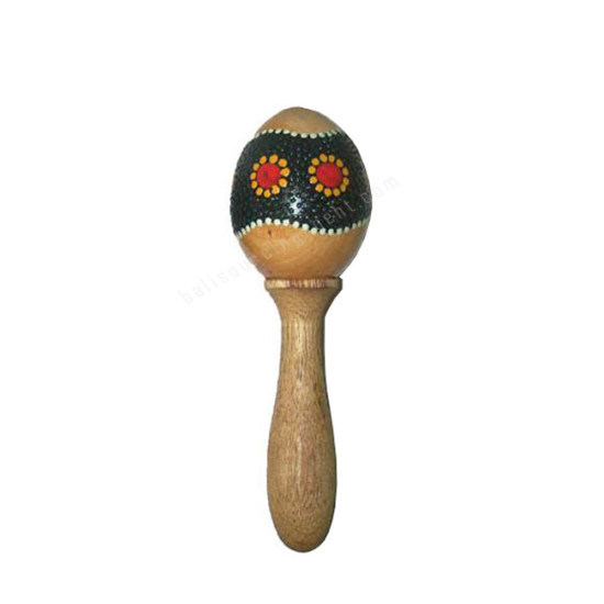 Wood Egg Stick Maracas Flower Motif 16 cm