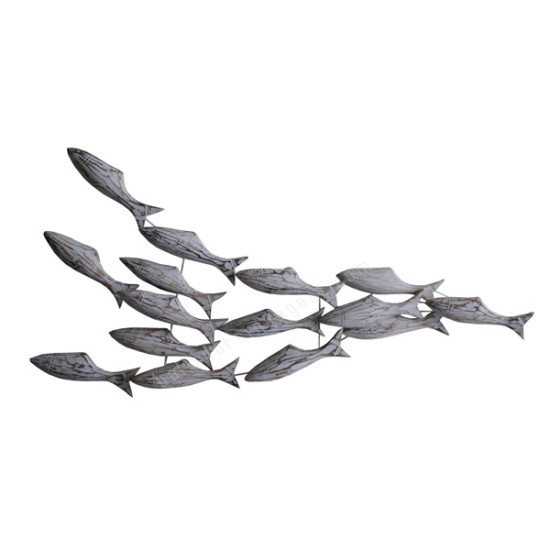 Wooden Fish Troops White Wash Wall Hanging