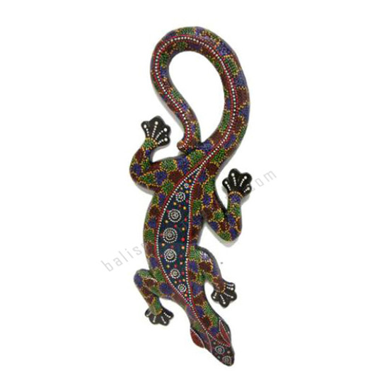 Wooden Gecko Green Red Painted Aborigine