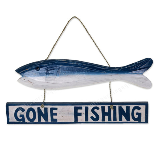 Wooden Hanging Fish Gone Fishing Sign