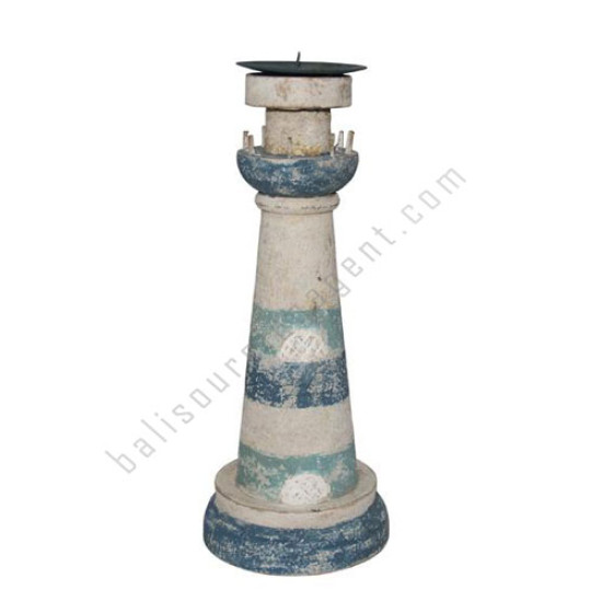 wood lighthouse candle blue wash 30 cm wholesale