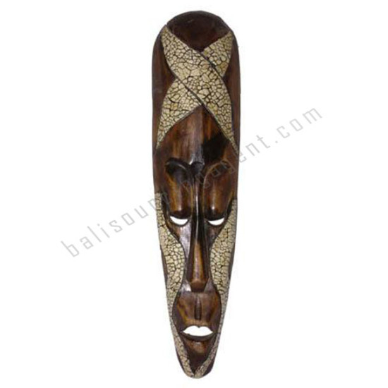Wood Mask Dark Brown White Cracked 50 cm