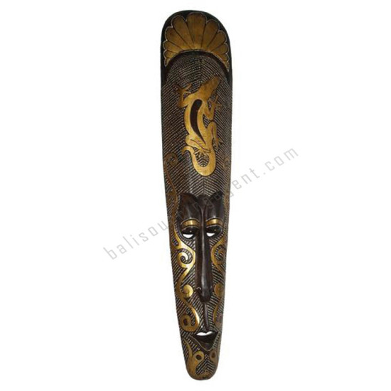 Wood Mask Gecko Antique Gold 100 cm