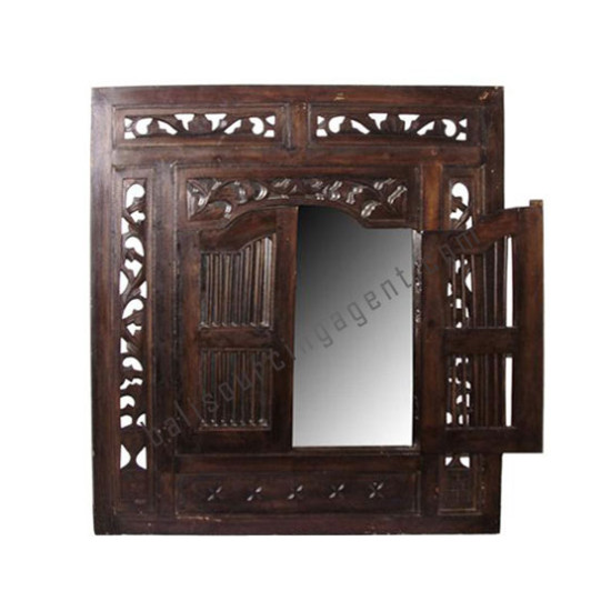 Wooden Mirror Opened Window Style Dark Brown
